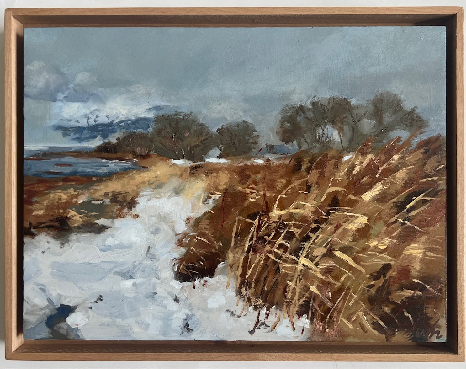 9”x12” oil on panel. Painting is protected with a clear varnish. Poem printed on card stock included. Comes in a floating alder wood frame. Please allow for some color variance due to screen calibration. Ships in bubble wrap and sturdy box.
